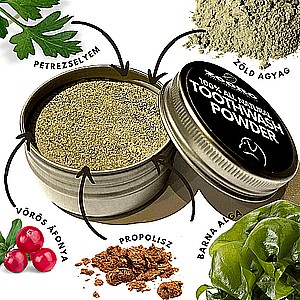 100%-ban természetes összetevőkből álló fogápolási termék, mely hatékonyan veszi fel a harcot kedvencünk fogkövével és lerakódásaival szemben.